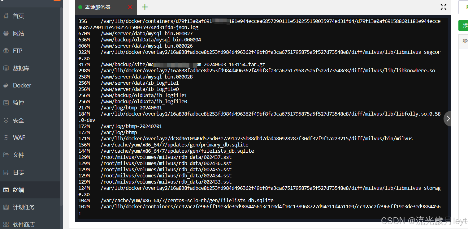 系統(tǒng)日志(如/var/log目錄下的文件)也可能占用大量空間。雖然寶塔面板沒有直接提供清理系統(tǒng)日志的功能,但您可以通過SSH連接到服務器,使用logrotate工具或手動刪除舊日志文件來管理。