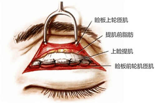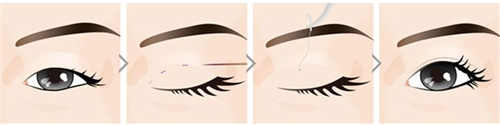沿雙眼皮線對(duì)皮膚、肌肉、脂肪等進(jìn)行綜合處理,使眼外皮和睜開眼睛時(shí)活動(dòng)的肌肉之間形成粘著現(xiàn)象,進(jìn)而塑造出自然優(yōu)美的雙眼皮。注:切開法5~7天拆線