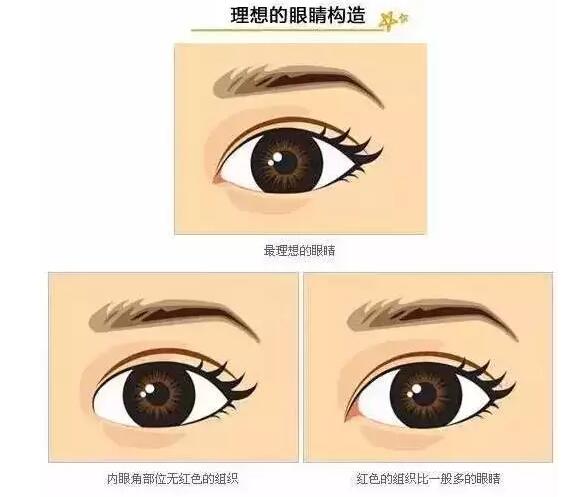 一般而言,人的眼睛分為白眼球、黑眼球,及內(nèi)眼角部位紅色的組織,而理想的眼睛是能看到內(nèi)眼角部位約50-80%的紅色組織,當你不符合這個比例的時候,可能就需要開眼角了!