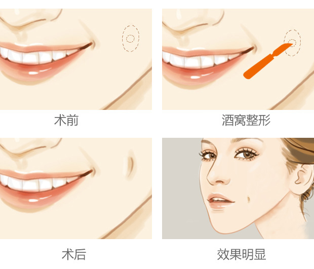 手術(shù)時(shí)確定酒窩的位置,較理想的酒窩位置一般是自兩口角畫一平行線,再從眼外毗角向下作一垂線,兩線相交的點(diǎn)或向內(nèi)上0.5厘米處。但也有求美者的定點(diǎn)位置會(huì)有所區(qū)別,所以,價(jià)格也會(huì)有所變化。